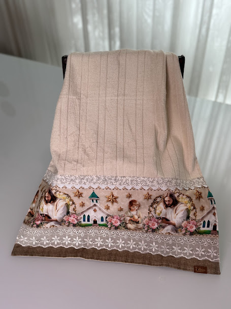 Toalha de rosto 100% algodão, de gramatura 400g/m², com toque macio e absorvente. Acabamento delicado em tricoline e bordado inglês.