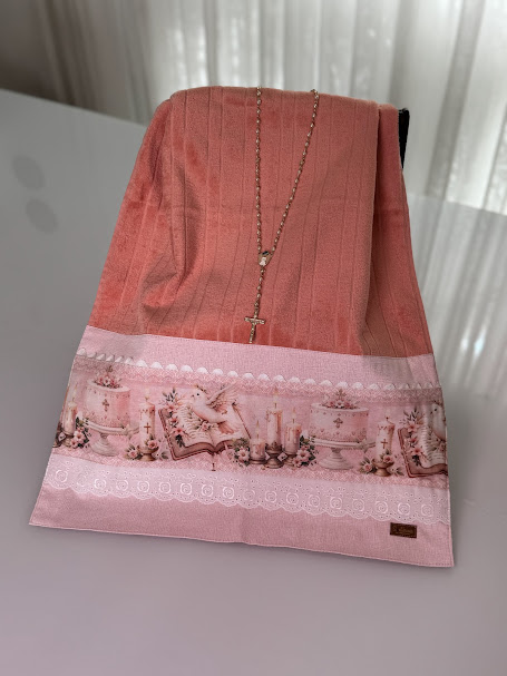 Toalha de Eucaristia confeccionada com toalha de rosto Artesanalle Dohler, 100% algodão, de gramatura 400g/m, oferecendo maciez, suavidade e elegância ao altar.