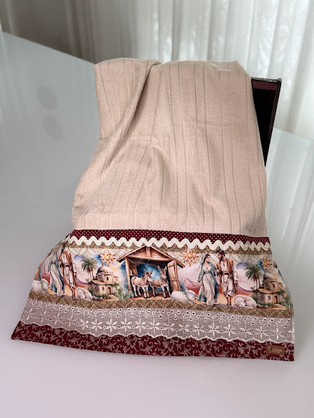 Toalha de rosto 100% algodão, de gramatura 400g/m², com toque macio e absorvente. Acabamento delicado em tricoline e bordado inglês.