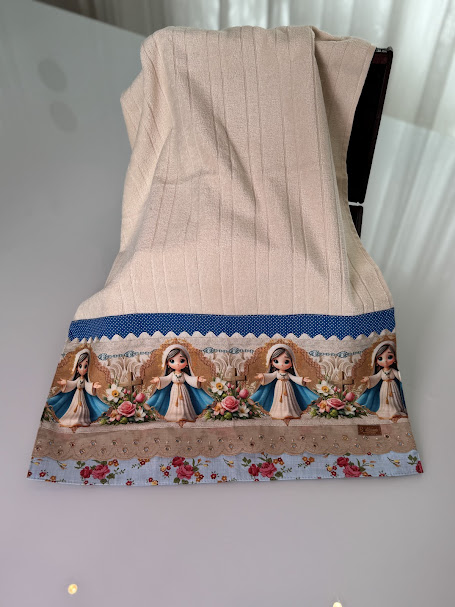 Toalha de rosto 100% algodão, de gramatura 400g/m², com toque macio e absorvente. Acabamento delicado em tricoline e bordado inglês.